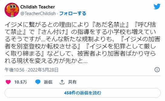 これまでもいじめ対策として様々な事が考えられてきましたが最近増えてきているという『あだ名禁止』これに関して物議が醸されています。