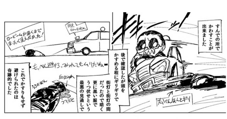 道が混んでてなかなか進まないでいると前方に車道に出た4~5人のスーツ姿の酔っ払い。