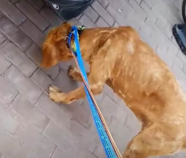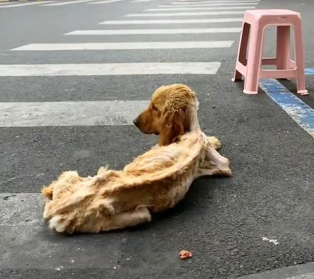ゴールデンレトリバーのグレースは、かつてその美しい金色の毛並みを誇るはずの犬でしたが、見捨てられた彼女は、まるで歩く骸骨のように瘦せ細り、骨は薄い皮膚で覆われるだけでした。肋骨の一本一本がくっきりと見え、彼女は絶望の中で生き延びていました。