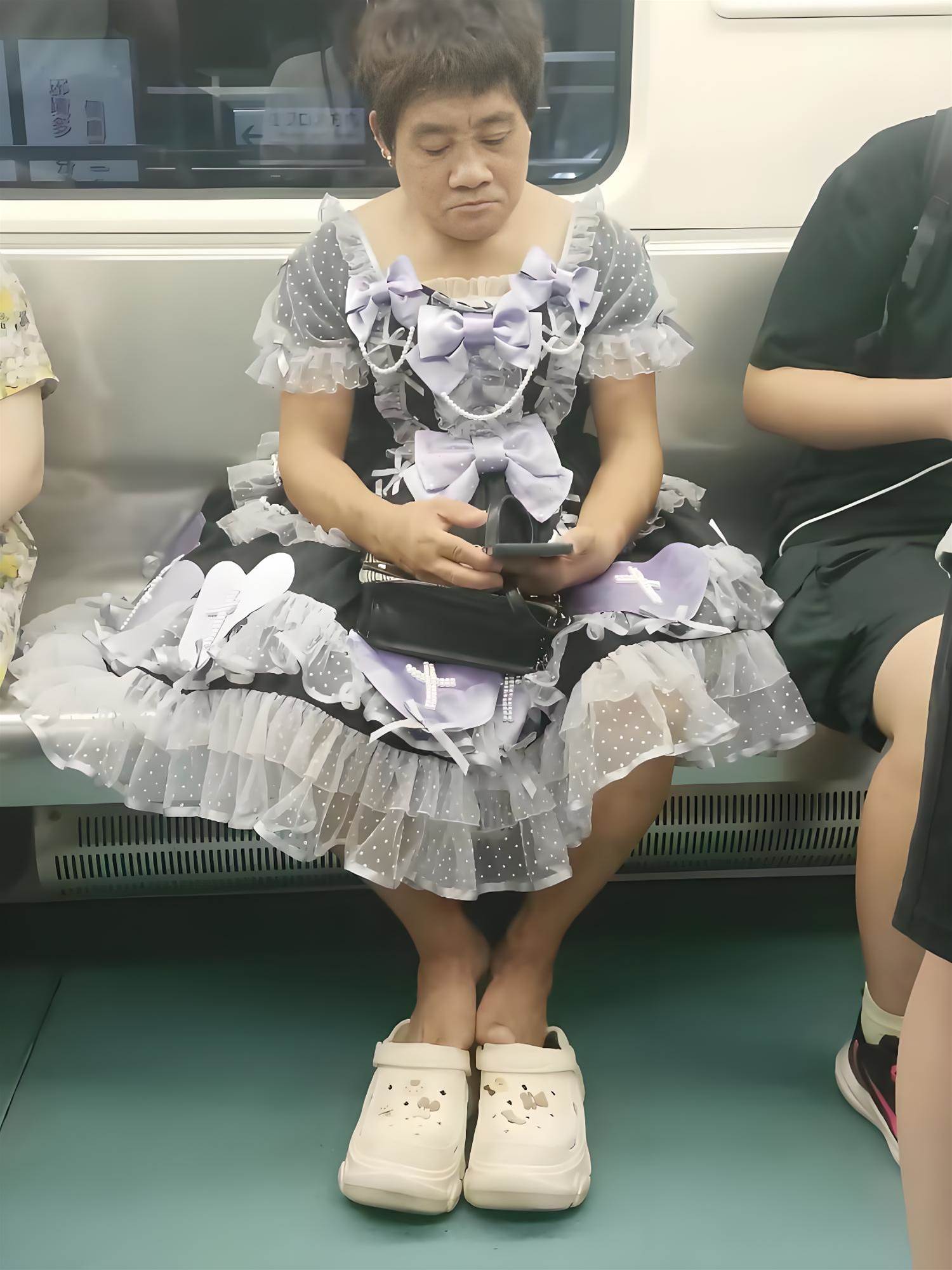 五十代くらいの女性が、少し大げさなくらいボリュームのある紫のパフスカートをまとって乗ってきたのだ。
