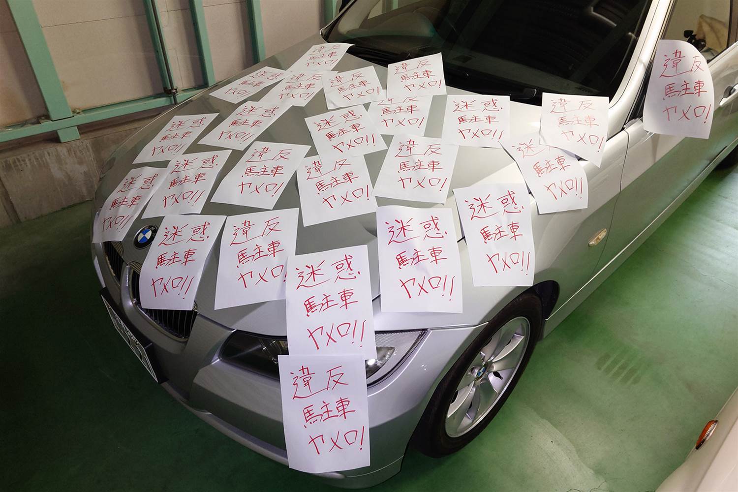 土地所有者が無断駐車に車の移動をお願いするステッカーを貼ったら、