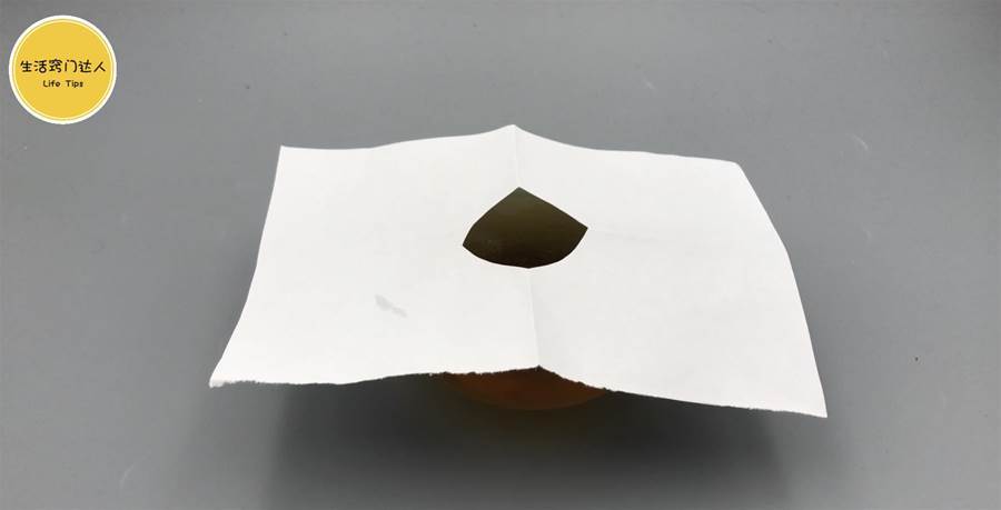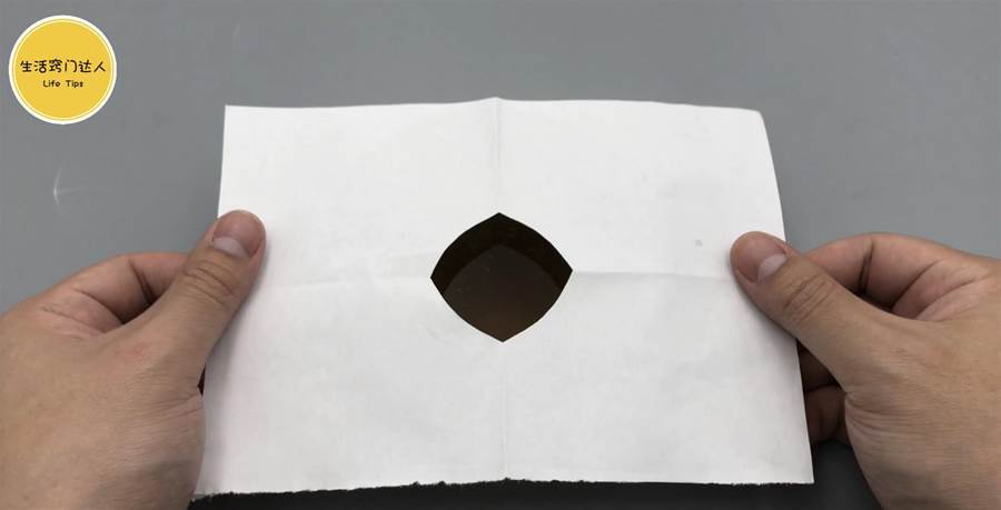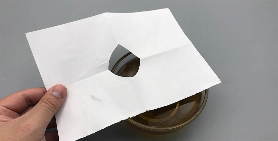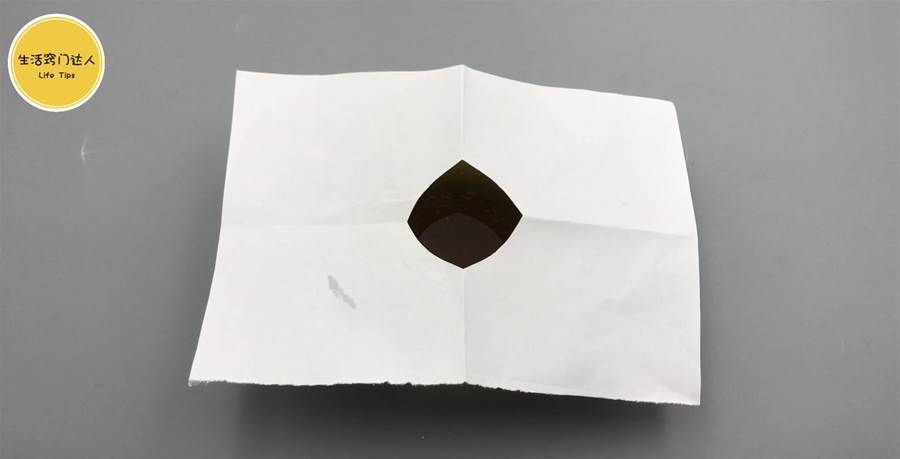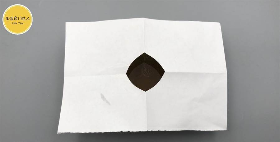 **白い紙(またはティッシュ)**を用意して折り、扇形になるように少し切って、小さな穴