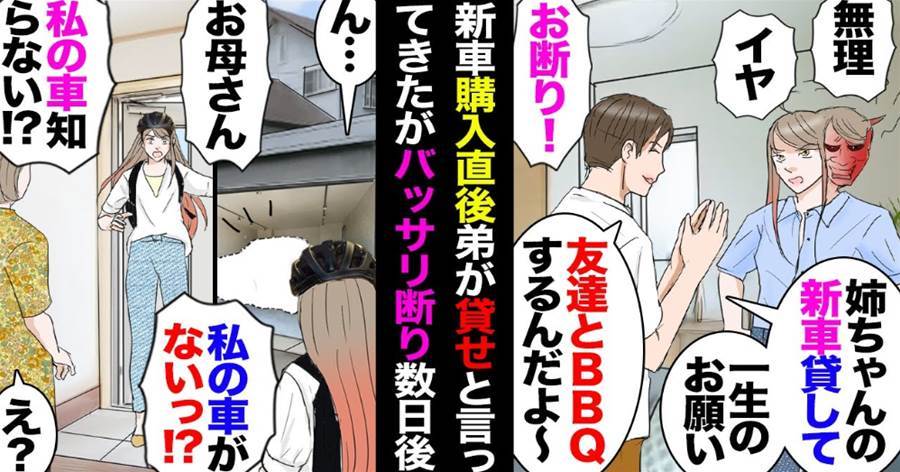 3.いくら新車が羨ましいからって、姉の車を無断で乗るのは、ダメでしょうしかもキャンプに行こうなんて汚されるのは、確実ですよねほんと呆れた