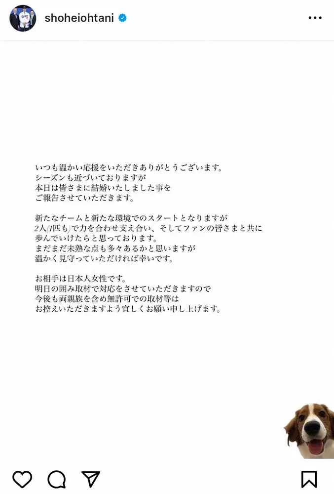 2023年2月29日、大谷翔平選手はInstagramで結婚を発表しました。3月1日に行われた会見で、大谷選手は