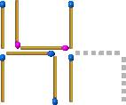 しかし結果図には、ピンク色で示された2本のマッチ棒が横向きに組み合わされ、一つの椅子がまるで逆さにして上に重なっているように見える。